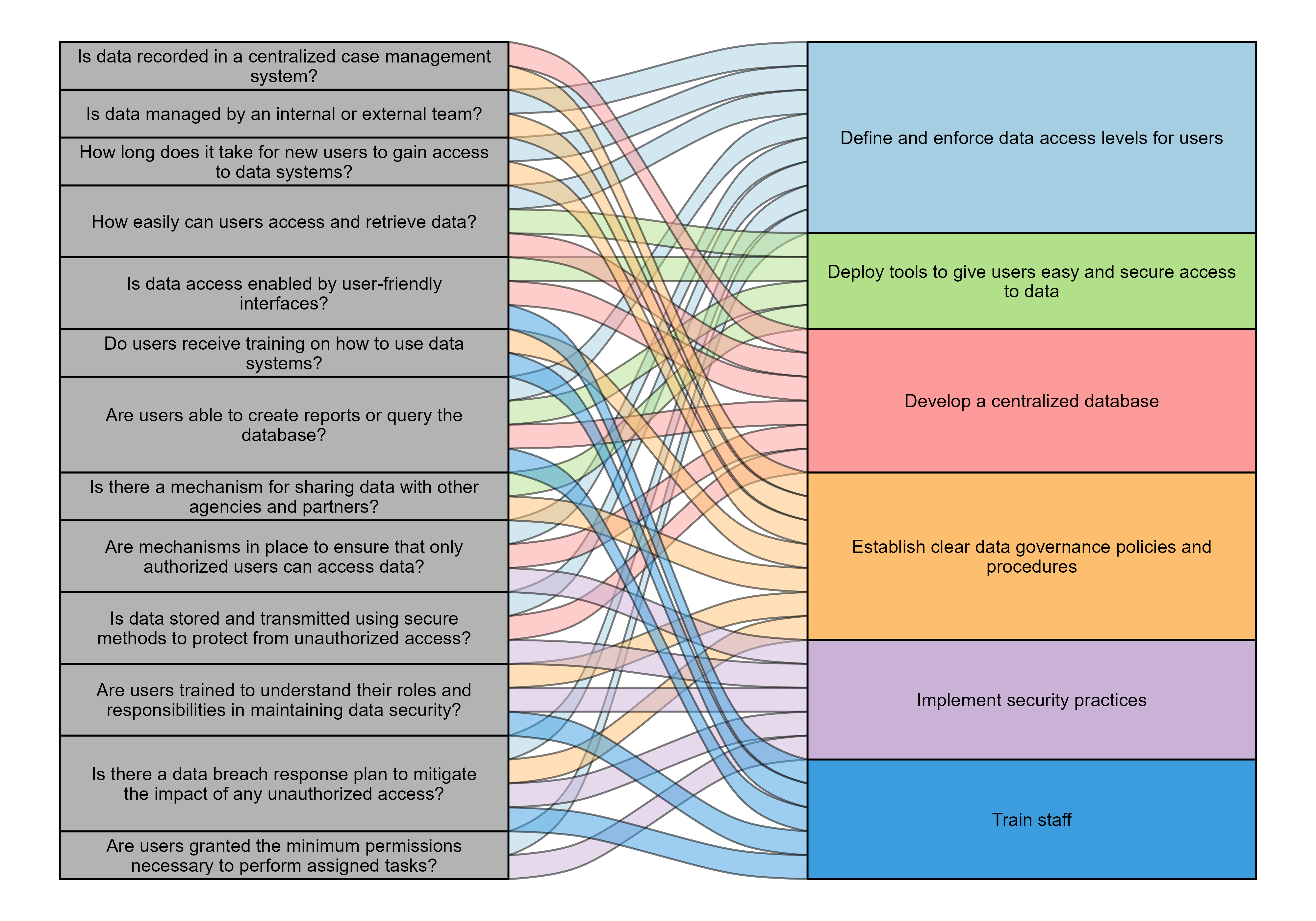Because each data user can have different access needs, the perception of data accessibility may differ across users and roles. Therefore, it can be beneficial to get input from front-end system users (e.g., people who input data, people who view data) about their ability to interact with the systems and data. If your system is undergoing a case management system transition, make sure to understand how the new system will impact data storage and accessibility.